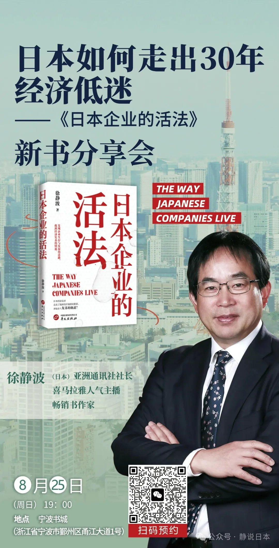 徐静波社长多年来致力于中日文化交流传播,著有《静观日本》、《日本的底力》等多本图书,拥有大量读者。他在喜马拉雅开设的静说日本专栏播放量已经超过3.5亿次,最新节目《徐静波精讲松下幸之助》上线17天,播放量超过21万,在商业财经类节目中排名第二。